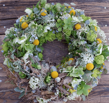 Türkränze, Wanddekorationen, florale Arrangements für Event- und Firmenfeiern, Blumen-Abos für Empfangsbereiche und haltbare Blickfänge. Der letzte Schliff für Geschäftslokale oder Hotels.