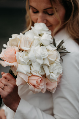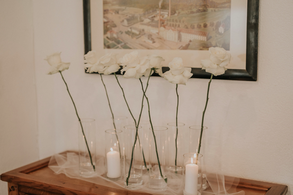 Willst du ganz up-to-date sein und mit der neuen Pantone-Farbe 2026 Cloud Dancer deinen Blumenschmuck wählen?